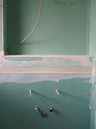 Man sieht die Verkofferung der Sanitärinstallationen,
