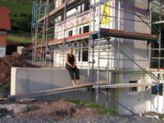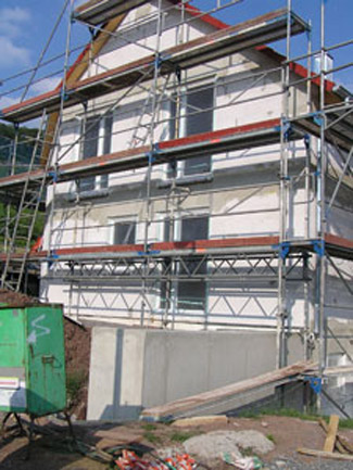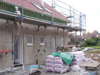 Außerdem ist der Grundputz außen so gut wie fertig.