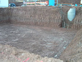 Und so sieht die Baugrube fertig aus. Hier sieht man auch den Kontrollschacht.